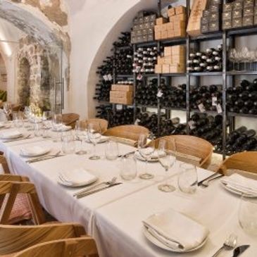 The wines are kept in niches in the walls, produce of selected vineyards of the Judean Hills and the Galilee.